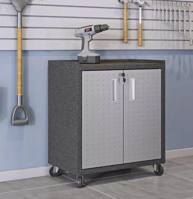 - Mobile Diamond Shape Texture Steel 31.5" Storage Cabinet for Garage Use.